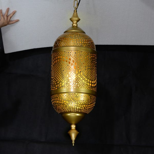 Arabic Cylinder Pendant Light β Moroccan Hollow Carved Metal Lamp for Living Room, Restaurant & CafΓ©