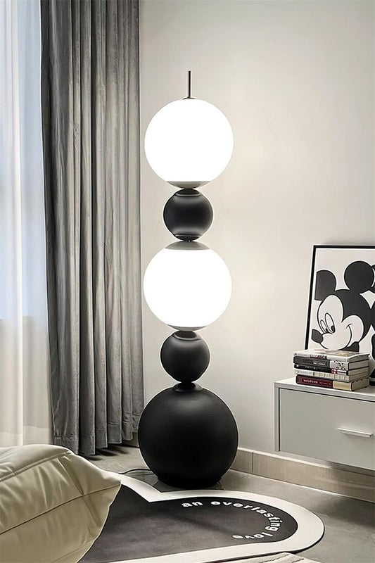 Luna Stack Modern 5- Globe Floor Lamp in Matte Black & Frosted White