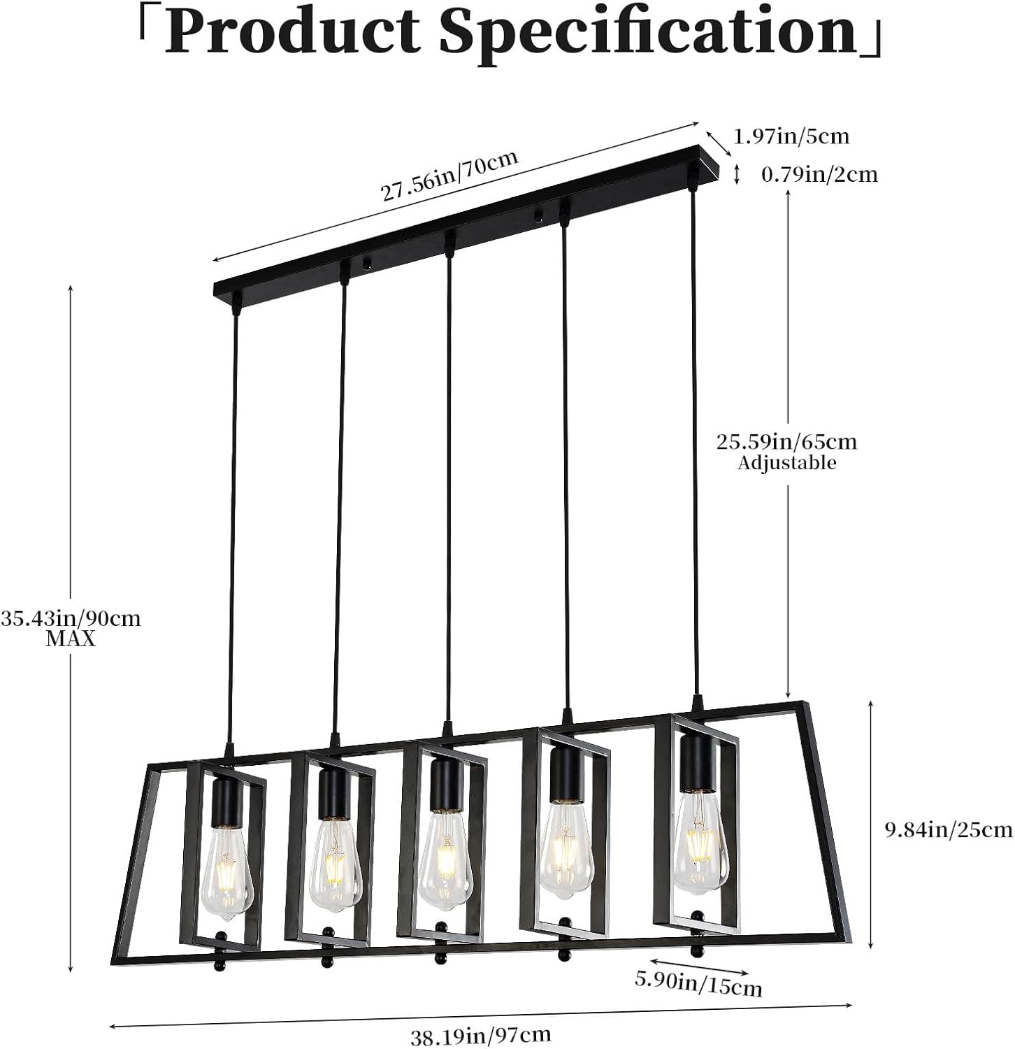 Upgrade your dining or kitchen space with the 5-Light Farmhouse Kitchen Island Pendant, a perfect blend of rustic charm and modern elegance. Crafted from premium natural wood and black metal, this industrial-style chandelier adds a timeless touch to any farmhouse, vintage, or contemporary décor. Featuring an open geometric frame, this statement piece provides ample lighting while maintaining an airy and minimalist look. With adjustable height options and rotatable light fixtures, you can fully customize the lighting to suit your space. Ideal for kitchen islands, dining tables, cafes, bars, and more.