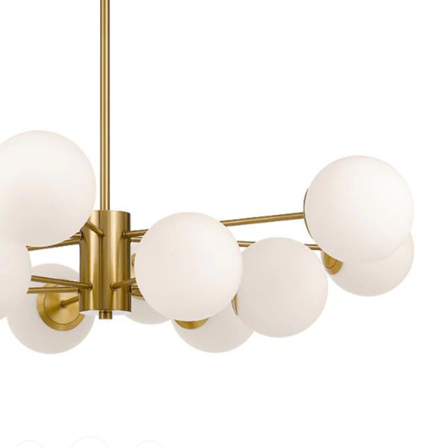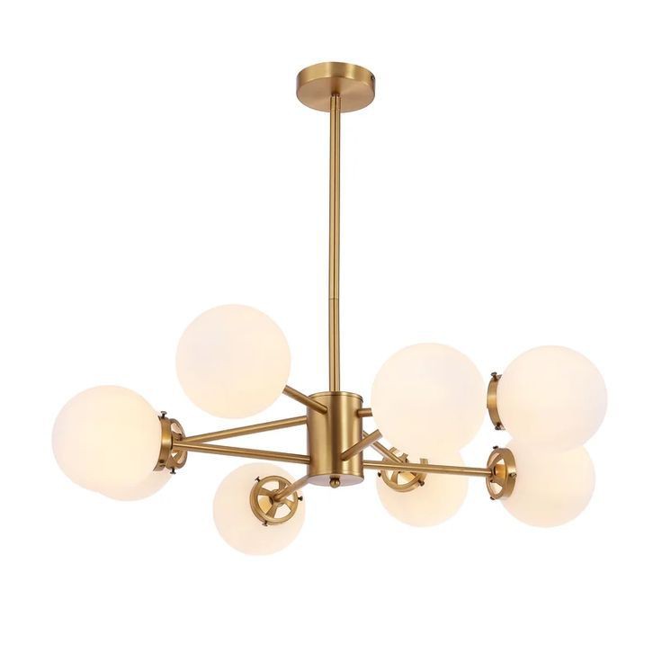 ✔ Sleek Mid-Century Design – Brass gold finish with 10 white glass globe shades for a stylish, high-end look.