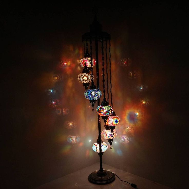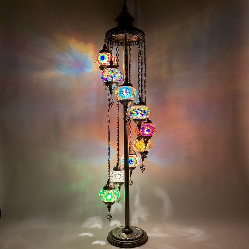 9-Globe Turkish Moroccan Mosaic Floor Lamp – Handmade Bohemian Tiffany Style