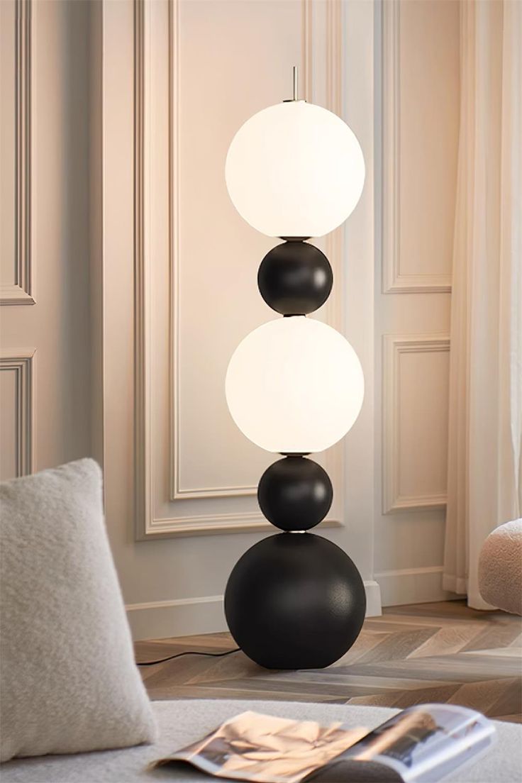 A harmonious balance of shape and contrast, the Luna Stack Floor Lamp brings contemporary elegance to any space. With its alternating globes of matte black and frosted white, it creates a dramatic visual rhythm—like a modern sculpture that also happens to cast the perfect glow. Ideal for living rooms, bedrooms, or entryways, it adds instant character and warmth to your home.