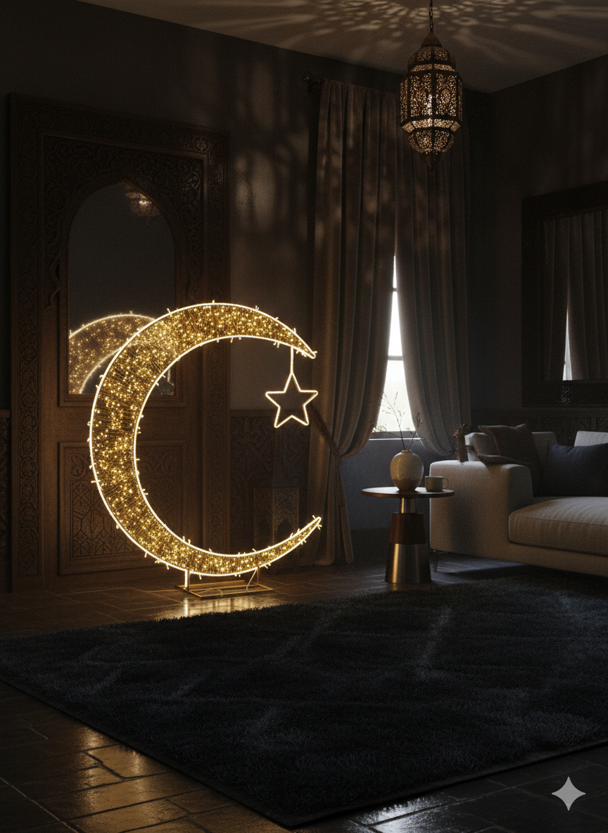 A sophisticated way to honor the Crescent Moon, representing the start of the holy month and the joy of Eid.