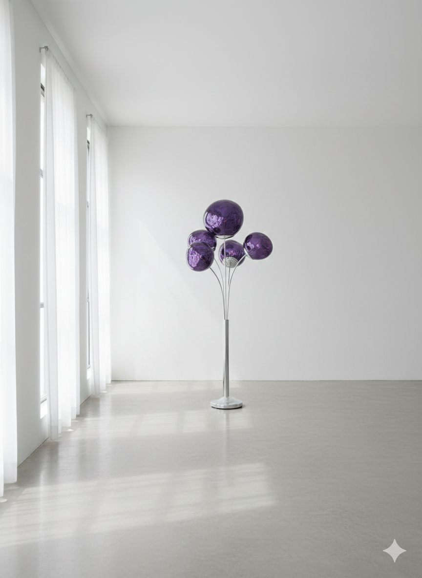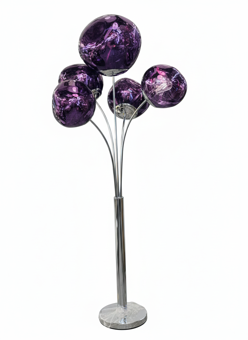 Make a bold statement with this Modern Multi-Globe Floor Lamp, featuring five stunning purple glass globes arranged in an elegant floral-inspired structure. Designed to blend modern luxury with artistic flair, this standing lamp creates a warm, ambient glow while acting as a decorative centerpiece.