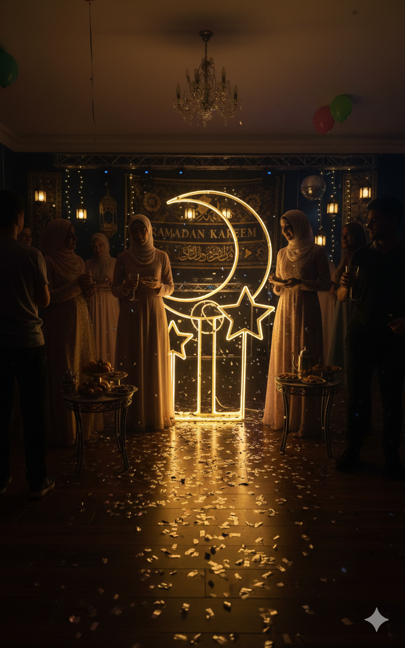 Creates a festive, spiritual atmosphere ideal for holy months, family gatherings, and prayer spaces.