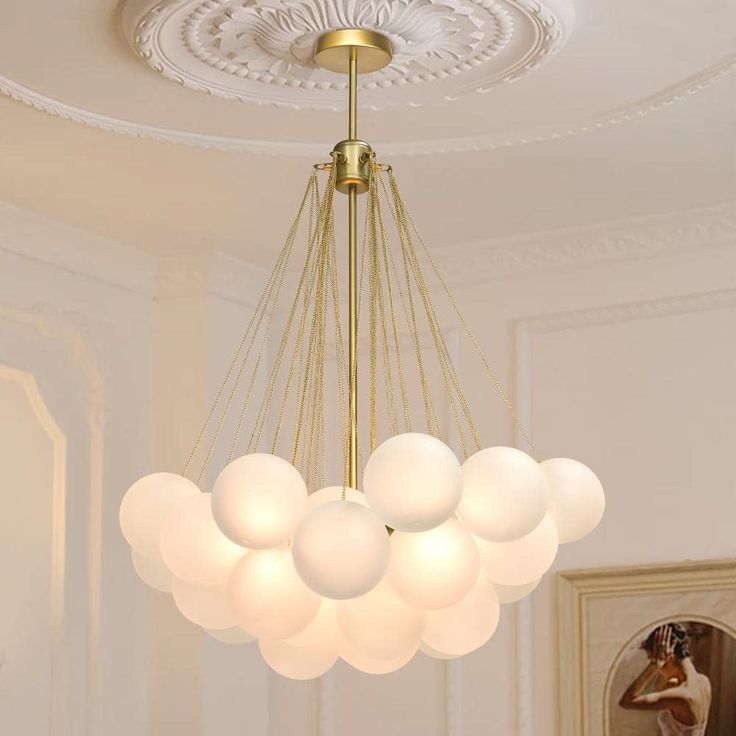 Sophisticated Design: Beautifully crafted crystal chandelier with transparent glass balls, creating a luxurious and modern atmosphere in living rooms, dining areas, bedrooms, lobbies, or any indoor setting.