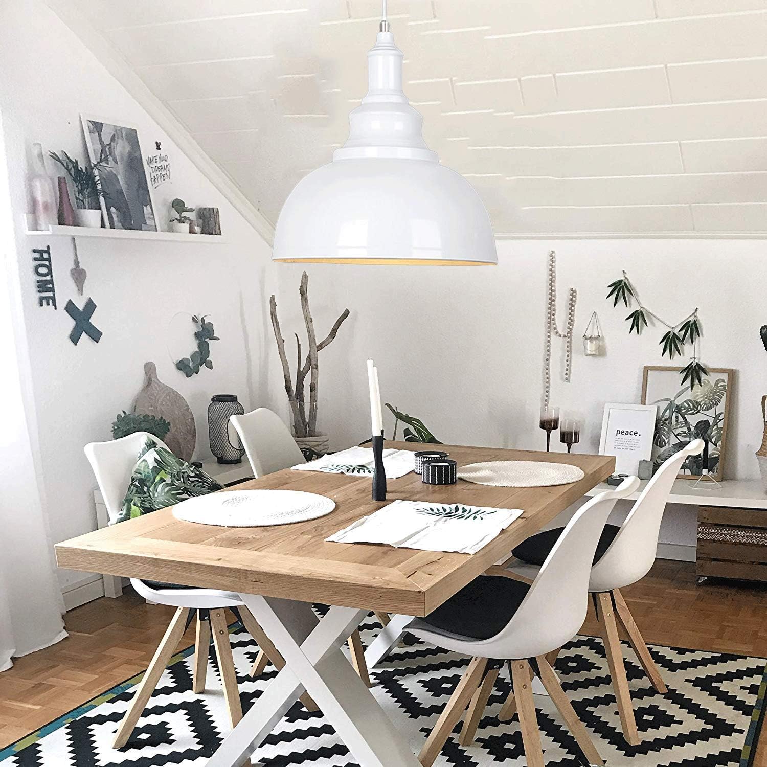 Retro Industrial Ceiling Light Shade Pendant Lamp with Adjustable Line (White)
