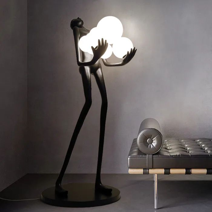 Turn your space into a modern gallery with the GlowBearer Sculpture Floor Lamp β a bold fusion of artistic form and soft illumination. Crafted from durable black resin, this humanoid figure stands tall and expressive, holding glowing orbs that mimic moons or dreams caught in hand.